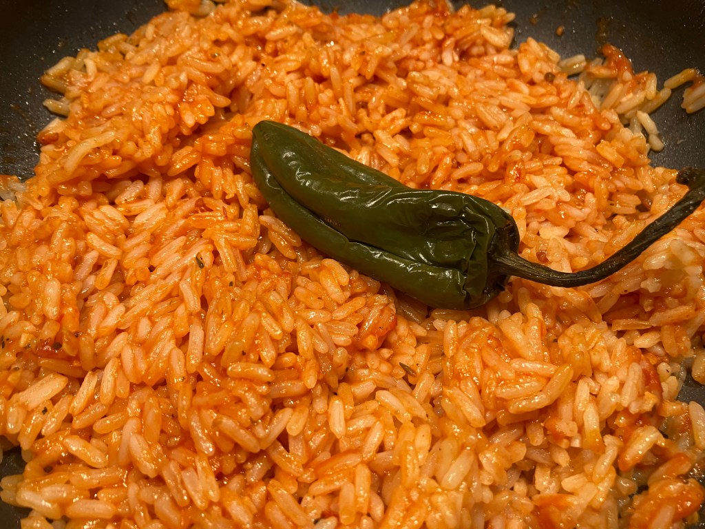 - Remove lid and jalapeno and fluff the rice with a fork
