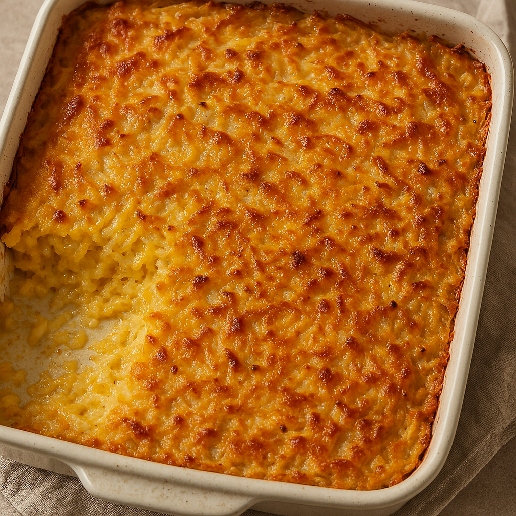 4. Pour into a greased 9×13 inch baking dish and top with remaining cheese